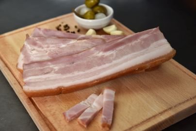 sertés bőr-, csont nélküli császárszalonna (86%), víz, étkezési só, dextróz, emulgeálószer (trifoszfátok), keményítő, sűrítő anyagok (feldolgozott Euchema moszat, szentjánoskenyérmag-liszt, xantán), aromák (füstaroma), antioxidáns (nátrium-eritro-aszkorbát), élesztőkivonat, fűszer, fűszerkivonatok, tartósítószer (nátrium-nitrit)