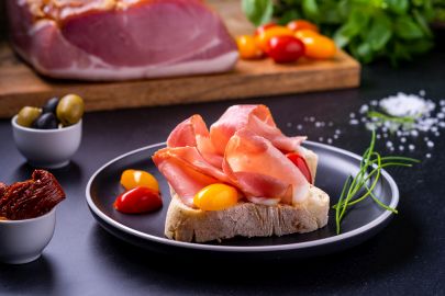 sertés csont nélküli bőrös comb, étkezési só, tengeri só, dextróz, tartósítószer (nátrium-nitrit) 100g késztermékhez 122g sertés combhús felhasználásával készült.